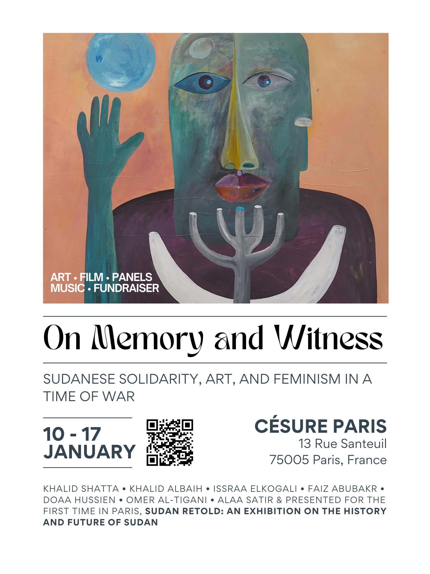 The conversation is moderated by Samira Ibrahim, a French journalist of Egyptian-Sudanese heritage with extensive experience covering Africa and the Arab world. Samira will guide the dialogue, connecting the artists’ practices to broader questions of memory, resistance, and collective storytelling. She helps illuminate how visual expression can sustain social and political engagement, while highlighting Sudan’s stories on both local and international stages.